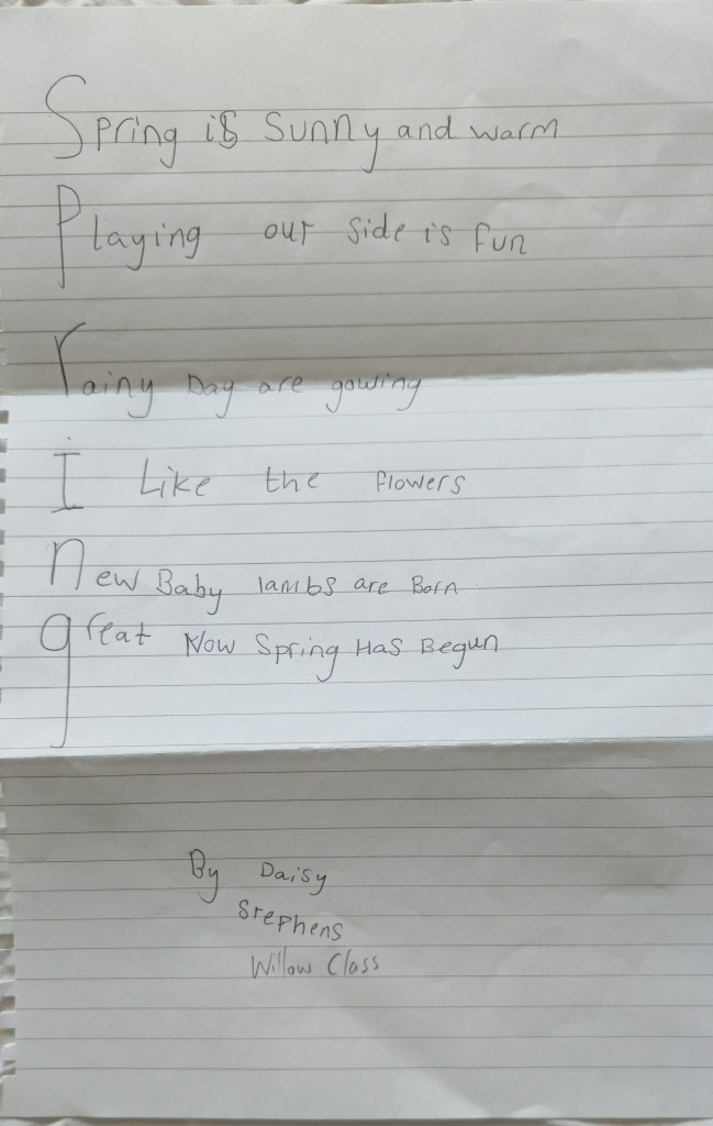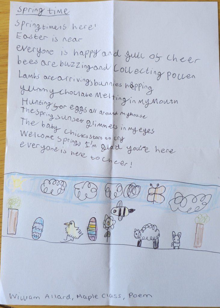 We had a fantastic number of entries to the Springtime Competition, and the overall winner was Christopher in Year 4 with his ingenious video entry:
